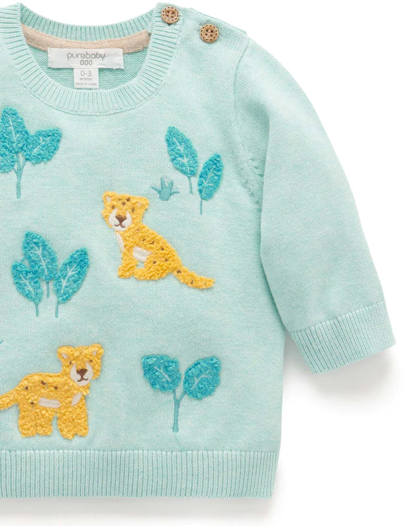 Our Jungle Jumper is perfect for layering on those cooler summer days! Featuring a fun, fluffy jaguar embroidery at the chest. Made from the softest GOTS certified 100% Organic Cotton for a soft and gentle touch against their delicate skin. Pair with our Light Slouchy Pants for a cute outfit.